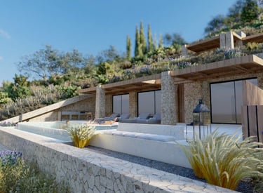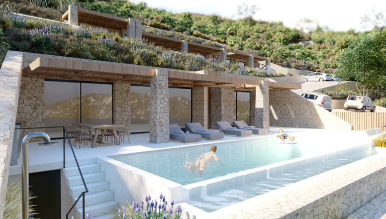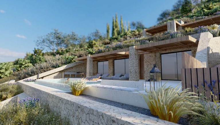 Beautiful stone walls blend the villas seamlessly into the natural mountainside.
